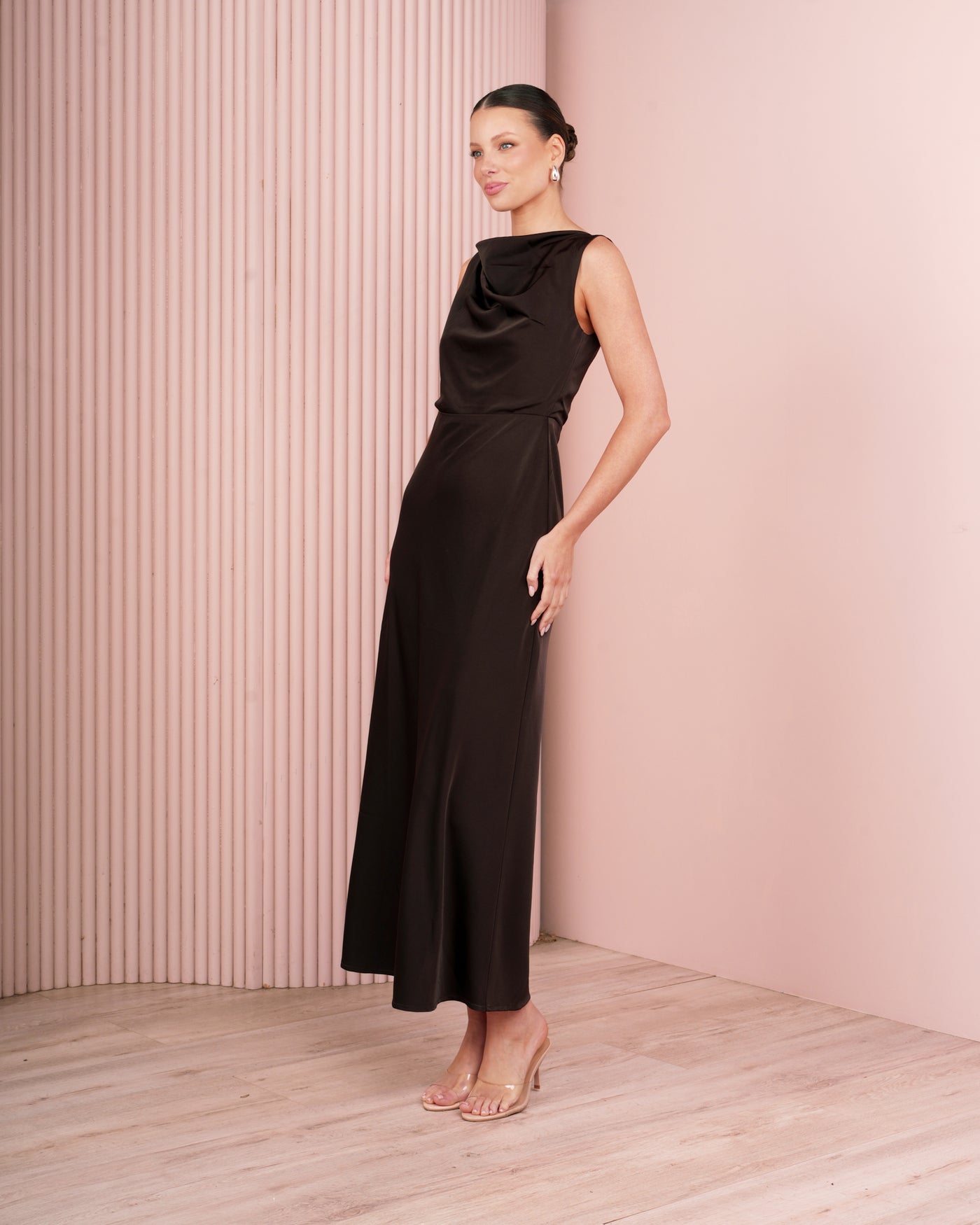 Our model is wearing a size AU 8/S. She is 178cm (5'10‘‘) tall with an 85cm (33.4‘‘) bust, 63cm (25‘‘) waist and 94cm (37‘‘) hips.