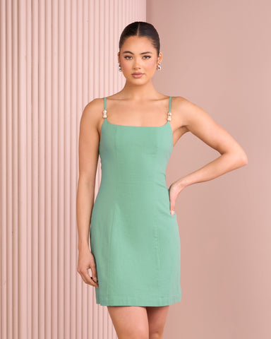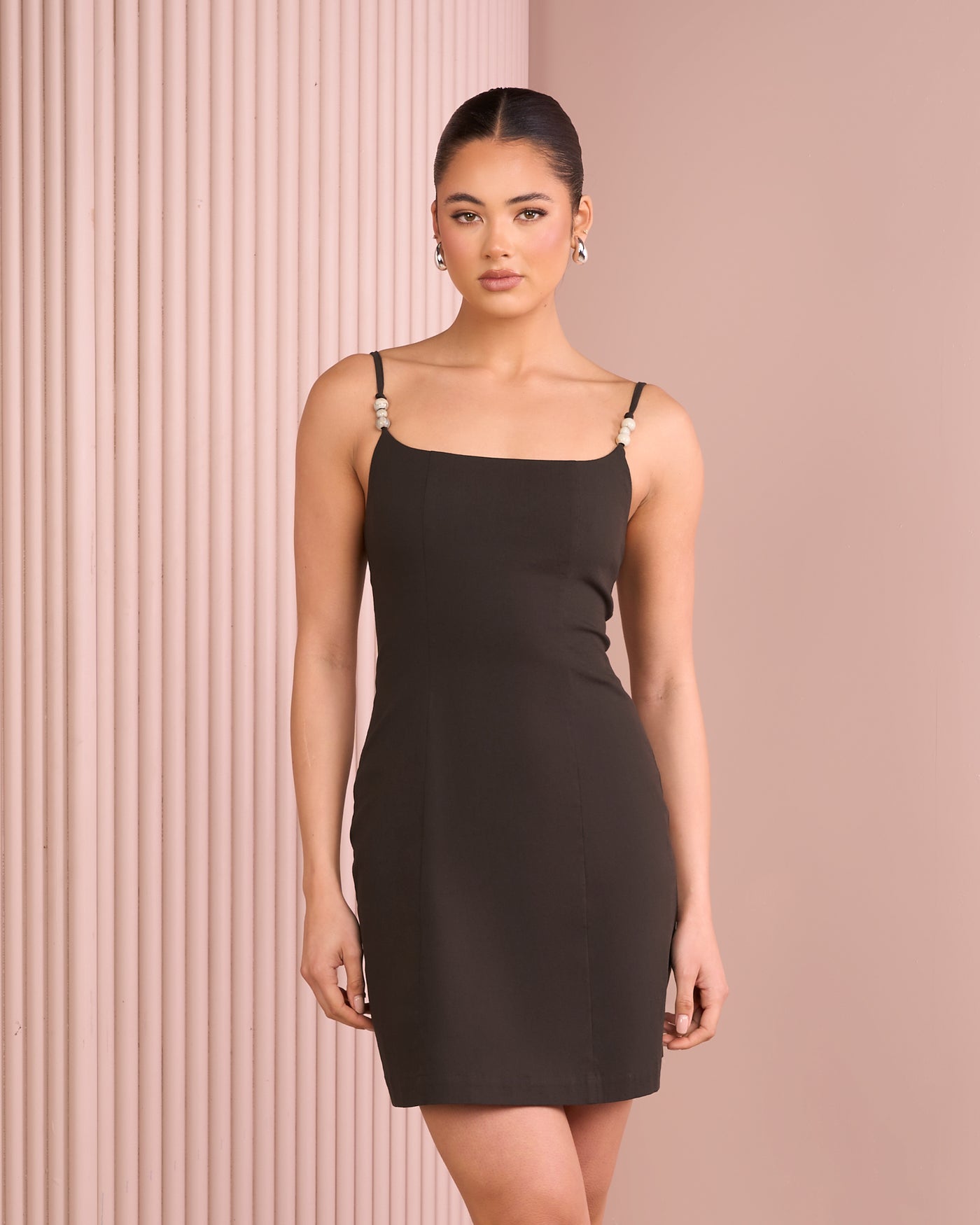 - Adjustable spaghetti straps with bead detailing