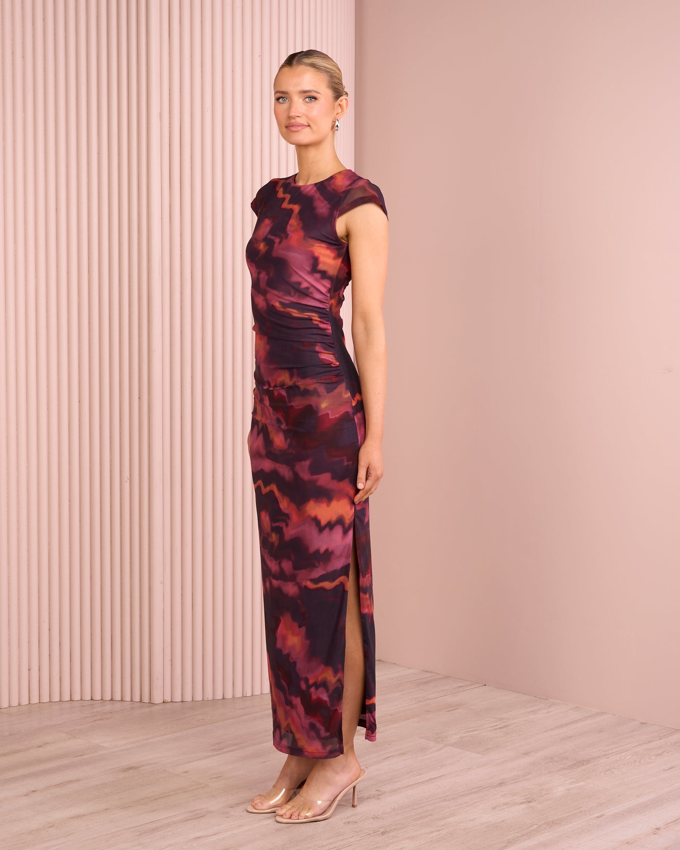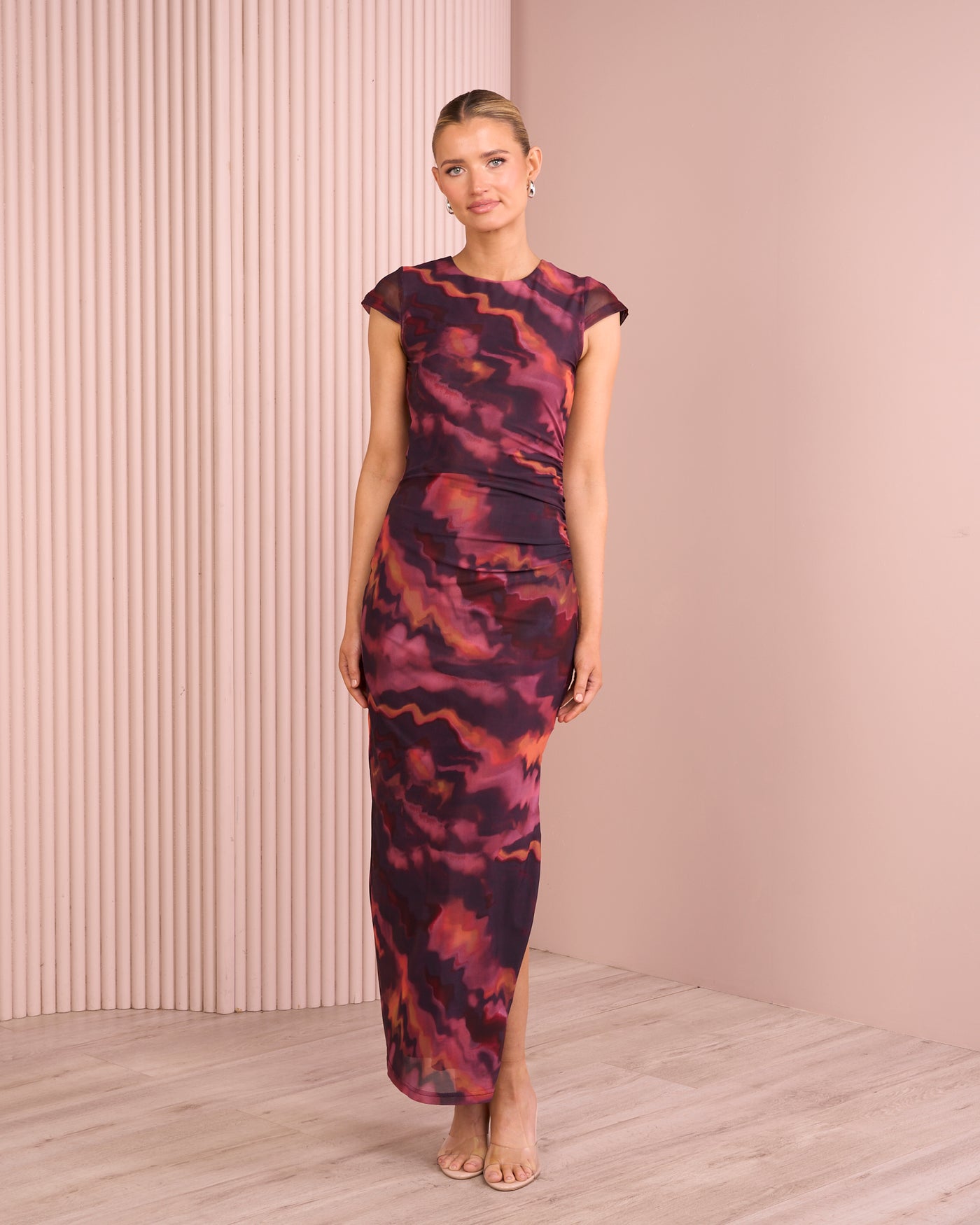 - Ruching at side bodice