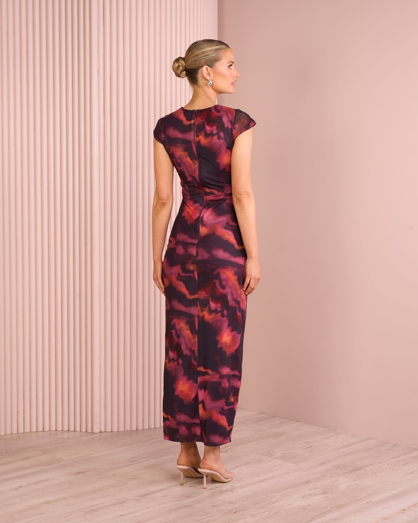 Our model is wearing a size AU 8/S. She is 176cm (5'9‘‘) tall with an 85cm (33.5‘‘) bust, 65cm (25.6‘‘) waist and 95cm (37.4‘‘) hips.