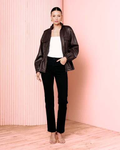 Our model is wearing a size AU 8/S. She is 178cm (5'10‘‘) tall with an 85cm (33.4‘‘) bust, 63cm (25‘‘) waist and 94cm (37‘‘) hips.