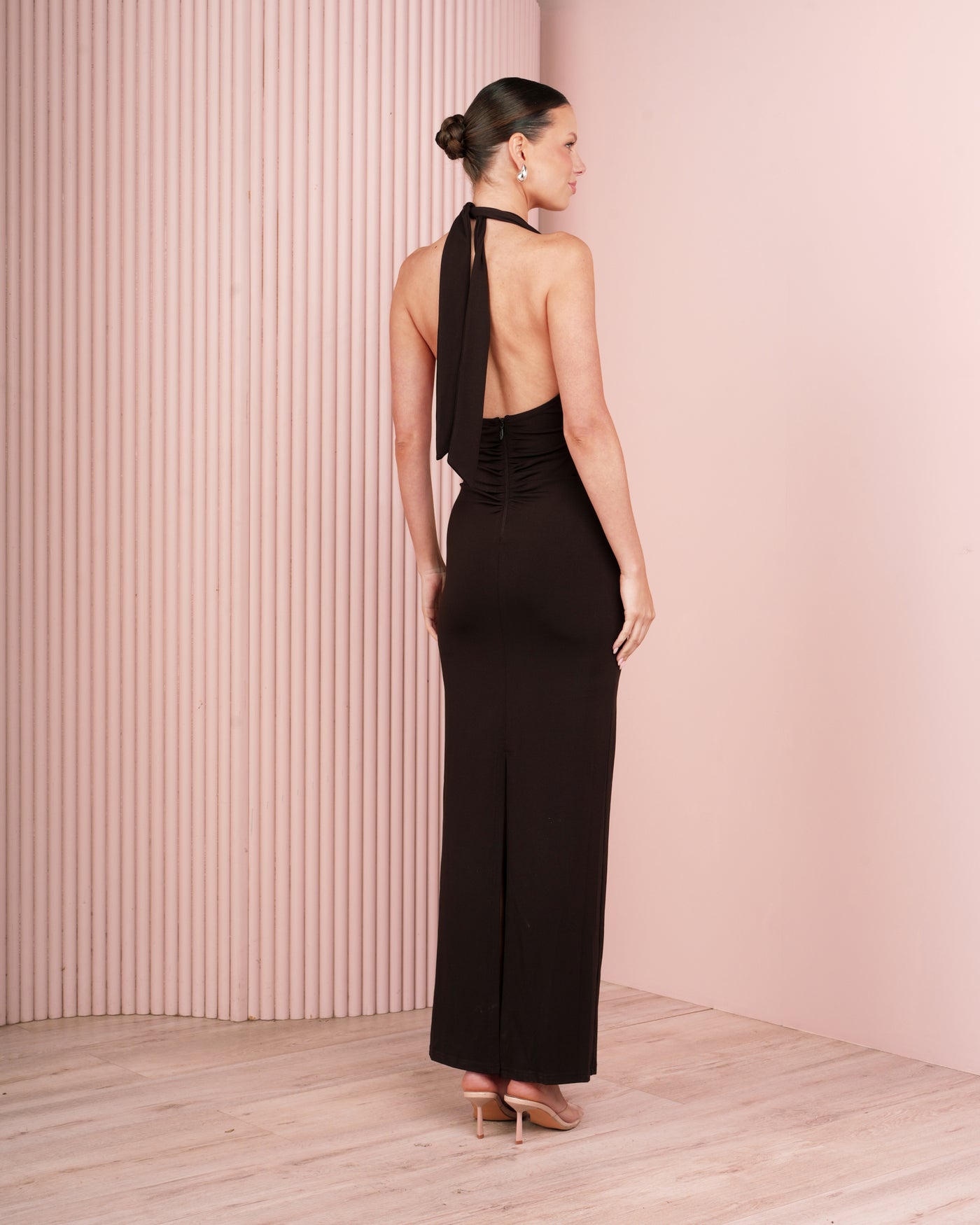 - Halter neck design; self-tie