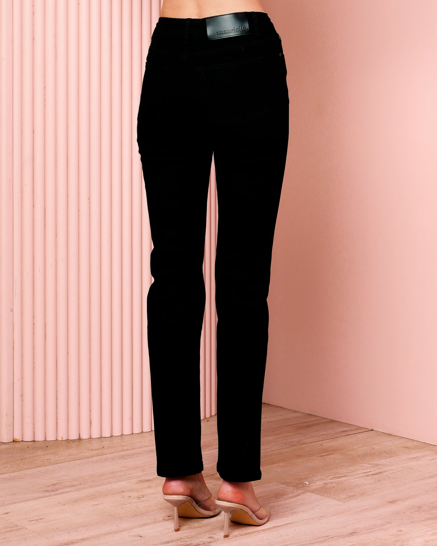 - Black "azzurielle." embossed leather patch at back